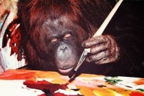 In der Mitte des Jahrhunderts, der abstrakte Expressionismus war gerade en vogue, wurde die Affenmalerei ob ihrer äußerlichen Nähe zu diesem Stil zum Medienthema. Nobilitiert durch Ausstellungen, etwa im Institute of Contemporary Arts, blickte eine interessierte Öffentlichkeit gebannt auf die tierischen ‚Künstler’. Der Star unter ihnen hieß Congo, ein Schimpanse, der während seiner zweijährigen Schaffensperiode rund 400 Blätter produzierte. Drei von ihnen kamen unlängst im Londoner Auktionshaus Bonhams für insgesamt 21.515,00 Euro unter den Hammer (vgl. hier).