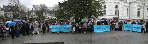 Am Sonntag, 10.2.2019, fand die dritte Demo vor dem Eingang des Wuppertaler Zoos statt, zu der sich trotz strömenden Regens und eisigen Windes rund 120 Menschen eingefunden hatten, die erneut die Abgabe BILIs an das Wales Ape & Monkey Sanctuary forderten. Von dem Waliser Sanctuary waren eigens zwei Vertreter angereist: sie hatten eine 1000km-Fahrt auf sich genommen, um, auch wenn die Aussichten auf ein Einlenken des Zoos denkbar gering waren, mit diesem über einen möglichen Transfer BILIs zu sprechen.