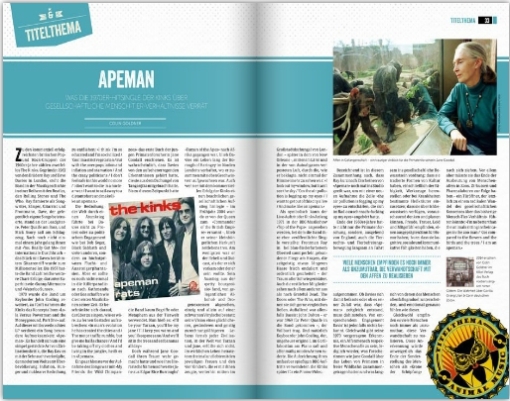 In Ausgabe 2/2015 der Musikzeitschrift "Melodie&Rhythmus" erschien ein Artikel über die britische Rockband THE KINKS, die 1970 mit "Apeman" einen ihrer zahlreichen Mega- hits gelandet hatte. Im folgenden steht der Text in langer Version zu lesen, in gekürzter Fassung findet er sich in der Printausgabe von M&R. Man versäume nicht, den unten verlinkten Auftritt der KINKS mit "Apeman" anzusehen...