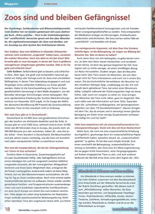Erschienen im Magazin tierrechte, 2/2018, des Bundesverbandes 'Menschen für Tier-rechte'.