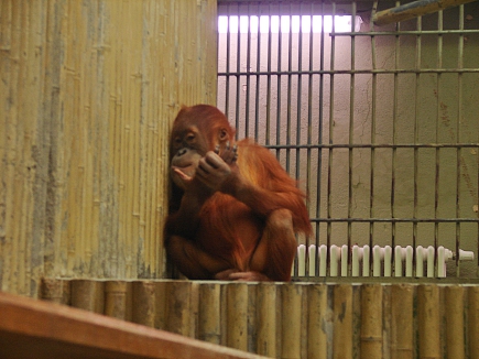 1995 wurde für die Orang Utans eine „Außenanlage“ erstellt, die es bis dahin nicht gab. Sie besteht aus zwei zusammenhängenden und insgesamt etwa 300qm umfassenden und mit 5m Höhe viel zu niedrigen Gitterkäfigen. Ausgestattet sind die Käfige mit Naturboden sowie den zooüblichen Totholzstämmen und Kletterseilen. Die beiden „Zuchtgruppen“ dürfen die Außenkäfige bei trockenem und warmem Wetter abwechselnd für jeweils ein paar Stunden pro Tag nutzen. Tatsächlich verbringen sie mehr als 95 Prozent (!) ihrer Lebenszeit in den extrem beengten Innenbunkern.