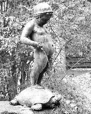 Auch wenn von vielen der historischen Bauten nur noch Photos existieren - vor dem Krieg hatte es ein „Straußenhaus“ in Gestalt eines ägyptischen Pharaonengrabes gegeben oder eine „Elefantenpagode“ im Stil eines südindischen Hindu-Tempels –, so vermitteln die rekonstruierten Tierhäuser doch einen guten Eindruck davon, wie in den Gründerjahren der europäischen Zoos das Unterhaltungsbedürfnis des gutbürgerlichen Publikums bedient wurde: Originalgetreu wiederhergestellt wurde etwa das ursprünglich im Jahre 1872 erbaute und einen orientalischen Sultanspalast aus „1001 Nacht“ darstellende „Antilopenhaus“. Gesondert zu erwähnen ist eine vor dem Eingang des Gebäudes aufgestellte Brunnenplastik des Berliner Bildhauers Georg Roch aus dem Jahre 1927, die unmissverständlich die pädagogische Kernaussage zoologischer Einrichtungen illustriert: ein kleiner Junge pisst von einem Felsbrocken auf eine Kröte herab, die vor ihm in einem Wasserrbecken sitzt. Was nichts anderes heißen soll als: Tiere stehen prinzipiell unterhalb des Menschen, mit ihnen kann zu persönlichem Gaudium in despektierlichster Weise verfahren werden. Zudem können sie nach Belieben miß- und gebraucht werden: Der pissende Junge steht auf dem Rücken einer Schildkröte und trägt zudem eine Art Helm auf dem Kopf, der aus dem Panzer einer Schildkröte gefertigt ist; in den Händen hält er zwei Babyschildkröten, aus denen er einen Wasserstrahl herausquetscht.