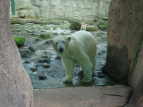 Der Bremerhavener „Zoo am Meer“ stellt sich dem Besucher als gigantische Anhäufung von Betonklötzen dar, die wohl irgendwie an Klippen oder Eisberge erinnern sollen: letztlich versteht der Zoo sich als „spezialisiert auf wasserlebende und nordische Tierarten“. Was neben den insofern gezeigten Eisbären, Robben, Pinguinen etc. ausgerechnet südamerikanische Pumas, Weißgesichtseiden-äffchen oder Leguane in der nordischen Betonkulisse suchen haben, erschließt sich nicht; ebensowenig die Frage, weshalb man weiterhin einen Trupp Schimpansen vorhalten zu müssen glaubt.