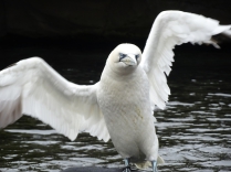Besonders deprimierend ist eine wenige Quadratmeter umfassende und mit Brackwasser gefüllte Betonkuhle, in der Seevögel gehalten werden, darunter dreizehn Basstölpel. Um die Tiere am Davonfliegen zu hindern, hat man ihnen, wie üblich in Zoos, die Flügel beschnitten. Ihre immer wieder unternommenen Versuche abzuheben, wobei sie doch nicht mehr zuwege bringen, als ein wenig auf dem Wasser hin- und herzuflattern, sind herzzerreissend. Auf einer Infotafel werden die Basstölpel, die mit bis zu 1,75 Metern Flügelspannweite zu den größten und elegantesten Seevögeln zählen, als „meisterliche Flieger“ beschrieben, die in der Lage seien, „Sturzflüge aus 40m Höhe“ zu vollziehen.