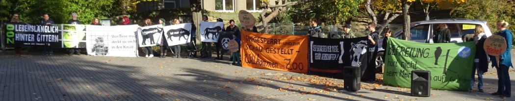 „Wir haben uns hier versammelt, um ein Zeichen zu setzen gegen die Gefangenhaltung und Zurschaustellung von Wildtieren in Zoos, die, beraubt all dessen, was sie und ihr Leben ausmacht, ein elendes Dasein zu fristen gezwungen werden, eingesperrt hinter Eisengittern, Panzerglas und stromführenden Zäunen. Ein Zeichen gegen die moralische Unrechtsinstitution Zoo.