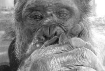 Gerade der Vollbetonbunker, in dem die Großen Menschenaffen untergebracht sind, lässt das vielzitierte Motto des Heidelberger Zoos „Leben live erleben“ noch abstruser erscheinen, als es ohnehin schon ist. Als schierer Zynismus sind die vorgeblich nach „didaktischen Gesichtspunkten“ aufbereiteten Informationen zu werten, die die Besucher im hauseigenen „Zooführer“ geboten bekommen: Orang Utans, Gorillas und Schimpansen seien aufgrund ihres hochentwickelten Gehirns „zu einem besonders vielgestaltigen und komplexen Sozialleben, zu beindruckenden Gedächtnis- und Kombinationsleistungen und zu einem nachweisbaren Ich-Bewusstsein befähigt“. Weshalb sie gleichwohl, eingesperrt hinter zentimeterdickem Panzerglas, einem gaffenden Publikum zur Schau gestellt werden, beantwortet der Zooführer nicht. Mit der Behauptung im Übrigen, nachzulesen auf einer Infotafel im „Menschenaffenhaus“, in Zoos gehaltene Gorillas „stammen heutzutage nicht mehr aus der freien Natur, sondern wurden bereits im Zoo geboren“, wird das Publikum dreist belogen. Tatsächlich sind weit über hundert der etwa 850 rund um den Globus in Zoos einsitzenden Gorillas sogenannte „Wildfänge“, die als Kleinkinder in Zoos verschleppt wurden. Auch in deutschen Zoos sitzen noch „wildgefangene“ Gorillas, beispielsweise in Berlin (Fatou*1957), Krefeld (Massa*1971) oder München (Roututu*1973 [Nov 2014 verstorben]); in Nürnberg stammen gar drei der fünf vorgehaltenen Gorillas aus „Wildfängen“ (Fritz*1963, Bianka*1972, Lena*1977), was die Kuratorin des Heidelberger Zoos, Sandra Reichler, die als Committee-Mitglied der Europäischen Erhaltungszuchtprogramme (EEP) zuständig ist für die „Nachzucht“ mithin von Gorillas, sehr genau wissen dürfte.