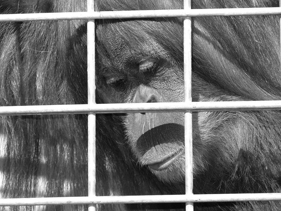 Die Gehege der Schimpansen und Gorillas wurden in jüngerer Zeit umgestaltet, die bis dahin bestehenden Betongräben zum Besucherbereich hin wurden aufgefüllt. Im Gehege der Orang Utans hingegen hat sich nichts geändert: der ursprüngliche Graben – bis zum Einbau umlaufender Panzerglas-scheiben waren die Gehege nach vorne hin offen – wurde hier beibehalten. Die derzeit drei vorgehaltenen Tiere sitzen auf etwa 60qm nacktem Betonboden. Auch die Wände und die Rückseite des Geheges bestehen aus nacktem Beton; nach oben hin ist es mit einer massiven Stahlgitterkonstruktion gesichert. An Einrichtung weist es Totholzstämme, künstliche Felsen, ein paar Seile und Feuerwehr-schläuche sowie eine aufgehängte Plastiktonne auf. Versteck- oder Rückzugsmöglich-keiten für die Tiere gibt es nicht.