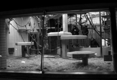 Innengehegen des Beton-„Affricaneums“ – den Schimpansen standen darin rund 100qm, den Gorillas rund 60qm plus „Wintergarten“ zur Verfügung – keine baulichen Erweiterungen möglich waren. Man entschied