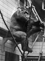 Während es Schimpansen bereits im „alten“ Zoo gab, kamen Gorillas und Orang Utans erst mit der Eröffnung des „neuen“ Zoos 1974 dazu. Sie wurden unter beengtesten Verhältnissen in einem eigens für